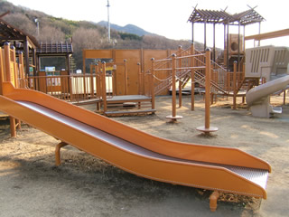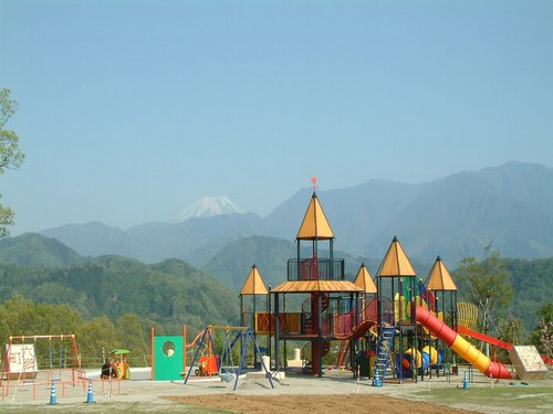 富士山の見える高台にある公園。全長80mのローラー滑り台や、フィールドアスレチック、バーベキュー場(要予約)などがあり、親子で楽しめる施設です。